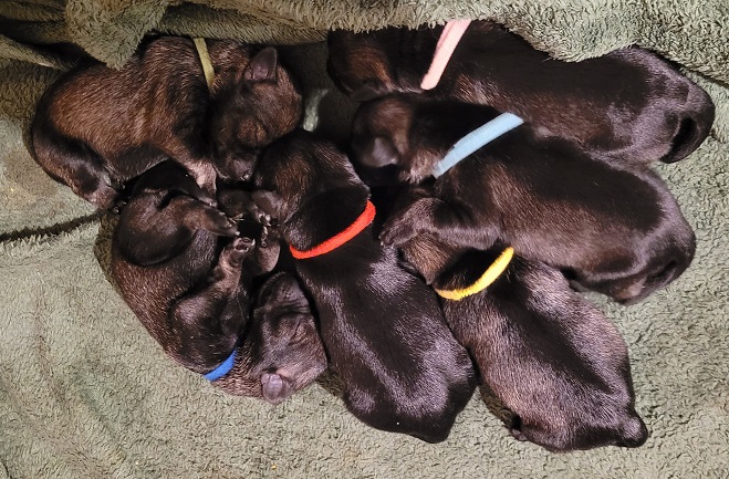 Am 13.09-2025 hat Jade 4 Hündinen und 2 Rüden auf die 'Welt gebracht.